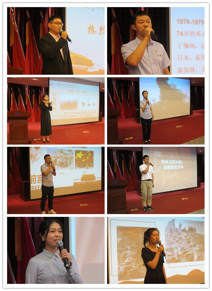 比賽伊始,一個簡約時尚的快閃視頻引燃開場,調(diào)起了現(xiàn)場觀眾的氣氛。來自五個團支部的八位選手陸續(xù)登臺展示,每位選手伴隨著自我展示的短視頻,精美的PPT和具有感染力的背景音樂,將個人的特點和獨特的風格發(fā)揮的淋漓盡致。大家分別以“五四運動,喚醒民眾”、“英雄母親鄧玉芬”、“偉大轉(zhuǎn)折開啟歷史新時期”等為主題,用生動的語言和感人的故事表達了對黨的無限熱愛和對英雄的敬仰之情。在演講過程中,每位選手都精神飽滿、感情充沛,他們富有感染力和吸引力的演講打動了評委和在場的觀眾,將現(xiàn)場氣氛推向一個又一個高潮。