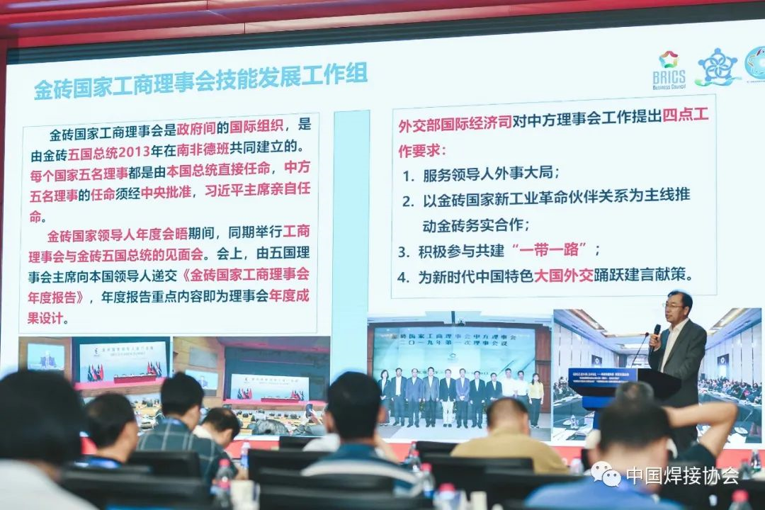 北京嘉克新興科技有限公司董事長劉振英博士做題為《深化金磚國家人才培養(yǎng)成果與展望》的報告。報告從金磚大賽的發(fā)展歷程,主辦承辦的各類賽事,推進國家技能訓練基地建設、實施“技能護照”計劃、舉辦技能發(fā)展與技術創(chuàng)新系列大講堂、成立未來技能發(fā)展與技術創(chuàng)新研究院、緊密與國際組織合作等幾個方面進行了詳細的介紹,這些工作扎實有效的提高了我國焊接事業(yè)在國際舞臺的影響力與話語權。