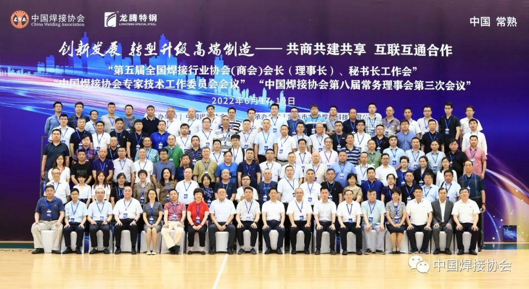 2022年6月18日,由中國焊接協(xié)會主辦,常熟市龍騰焊材科技有限公司承辦的第五屆全國焊接行業(yè)協(xié)會(商會)會長(理事長)、秘書長工作會議,中國焊接協(xié)會專家技術工作委員會會議在常熟召開。常熟市人民政府副市長李漢中、中國焊接協(xié)會副會長兼秘書長李連勝、常熟市龍騰特種鋼有限公司黨委書記、董事長季丙元,中國焊接協(xié)會副會長龍偉民、樊險峰、劉長城、葉德平、謝偉新、張寧紅,中國焊接協(xié)會表面工程與增材制造工作委員會理事長劉振英、中國焊接協(xié)會監(jiān)事王春生、中國焊接協(xié)會副秘書長林曉輝、方乃文等全國各省市地方行業(yè)組織,中國焊接協(xié)會分支機構理事長、秘書長,以及國內焊接行業(yè)骨干企業(yè)領導、專家共計134人出席了本次會議。本次會議主題為“創(chuàng)新發(fā)展 轉型升級 高端制造”。